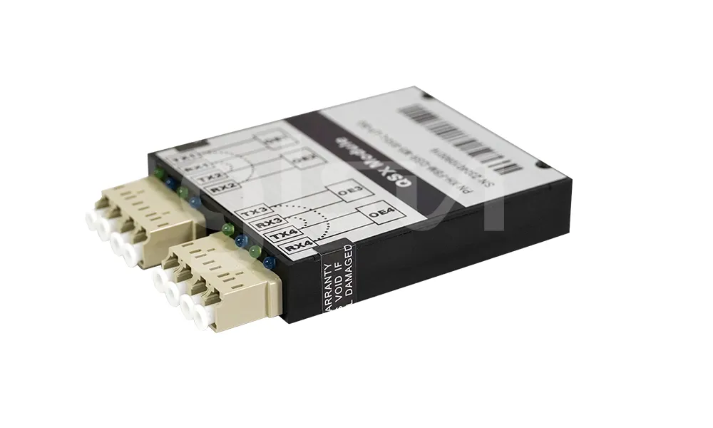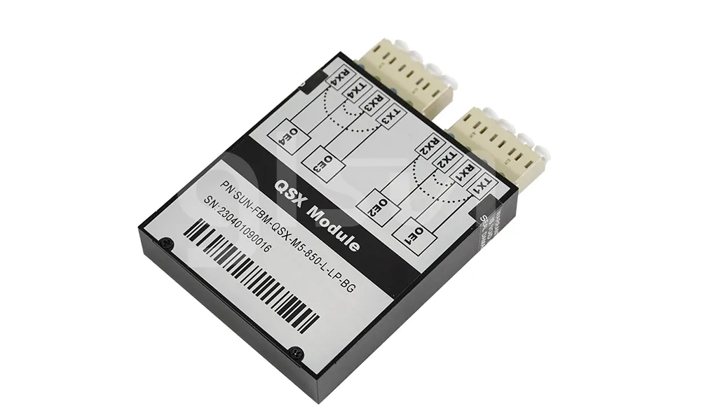 QSX: Qaud Port 1.25Gbps | M5: MM, 50/125 M6: MM, 62.5/125 | 850: 850nm VCSEL | L: Latching | LP: LC/PC |